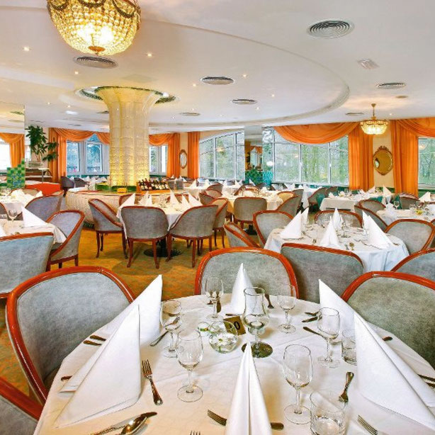 Morgens bedienen Sie sich am reichhaltigen Frühstücksbuffet im „Café de Paris“ mit Blick auf den Park. Das Abendessen wird Ihnen ebenfalls in buffetform, im angenehmen Ambiente des Restaurants „La Fontaine"