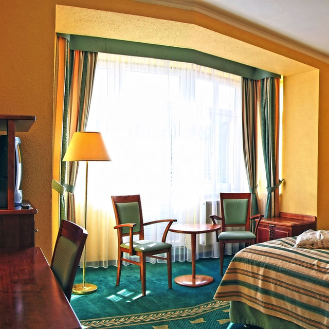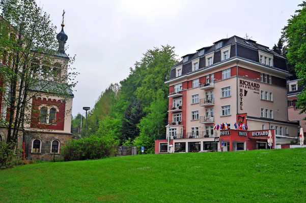 Das 4-Sterne-Hotel Richard liegt im Zentrum von Marienbad, am Anfang des Waldparks mit Blick auf die russisch-orthodoxe Kirche.